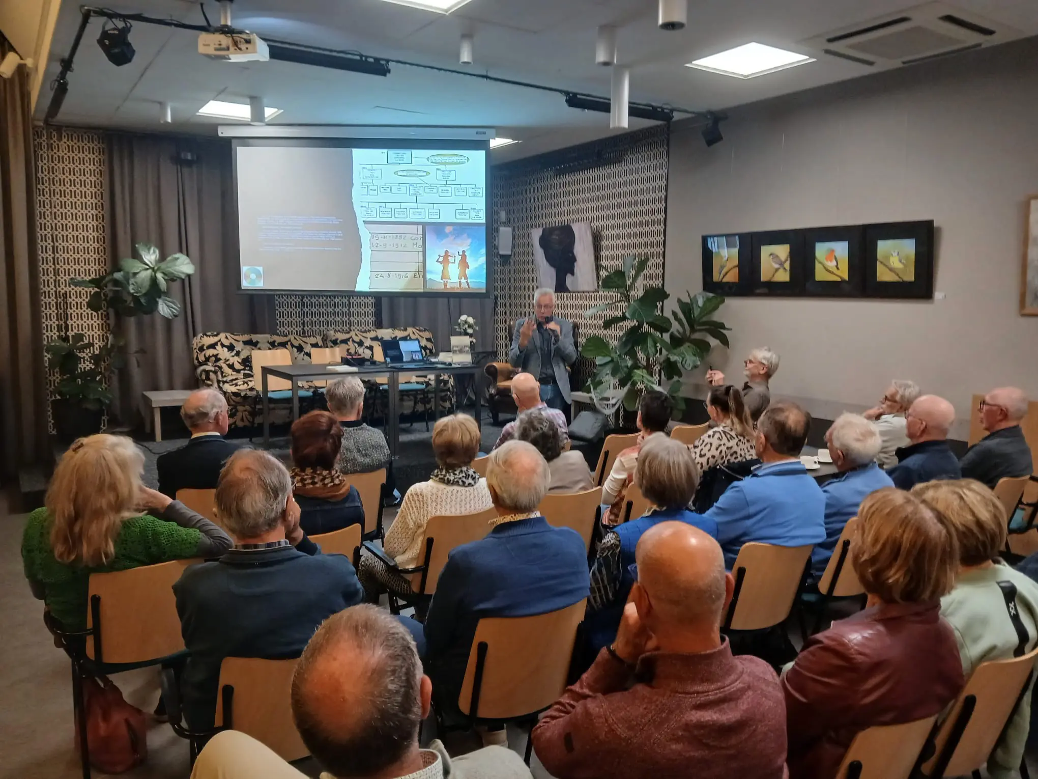 Dinsdag 7 oktober gaf Van der Sman in de Kastanjehof in Kwintsheul voor ongeveer 80 leden van het GOW een lezing over zijn boek. Hoe kom je van een genealogie tot een familiegeschiedenis. ,,Het is niet van je doet zomaar wat onderzoek, je schrijft alles op en het boek is klaar’’ zei Van der Sman. ,,Er zijn valkuilen. Het verschil tussen fictie en non-fictie vind ik altijd moeilijk’’.